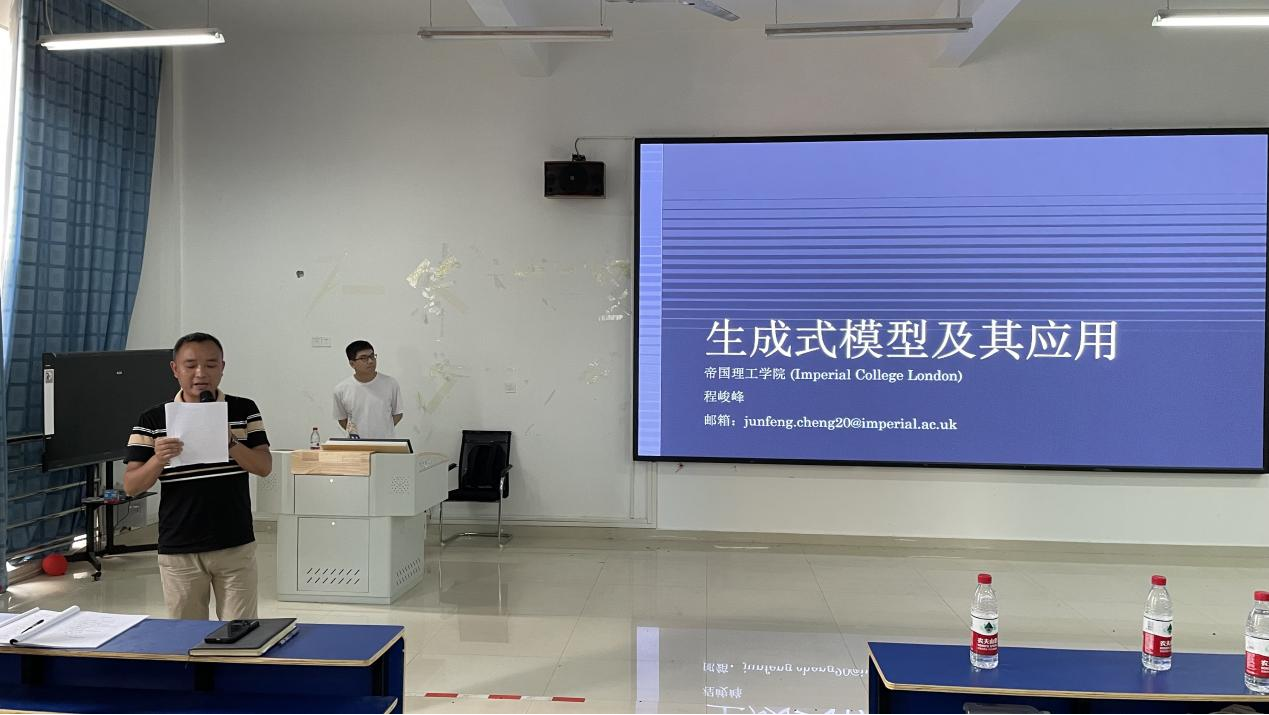 6月21日,学院在教学楼2311举办了一场主题为“生成式模型及其应用”的传技讲坛。本次讲座邀请了来自帝国理工学院( QS 2023第六位)人工智能专业的程峻峰博士担任主讲,全体教职工及全体计算机专业学生参加了讲座。讲座由院长邹水龙主持。