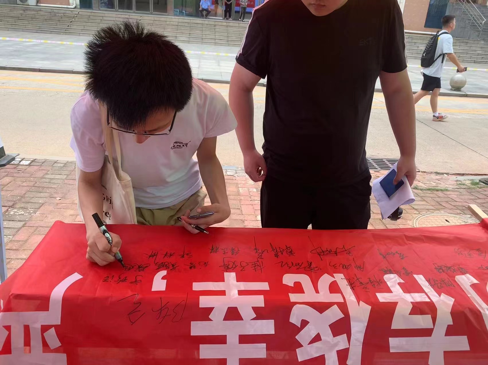 本次主题签名活动,目的在于端正同学们的考风考纪,使“诚信守纪光荣,违纪作弊可耻”的观念深入人心,教育学生以正确的态度对待考试。为自己、为广大同学营造一个公平的竞争环境。