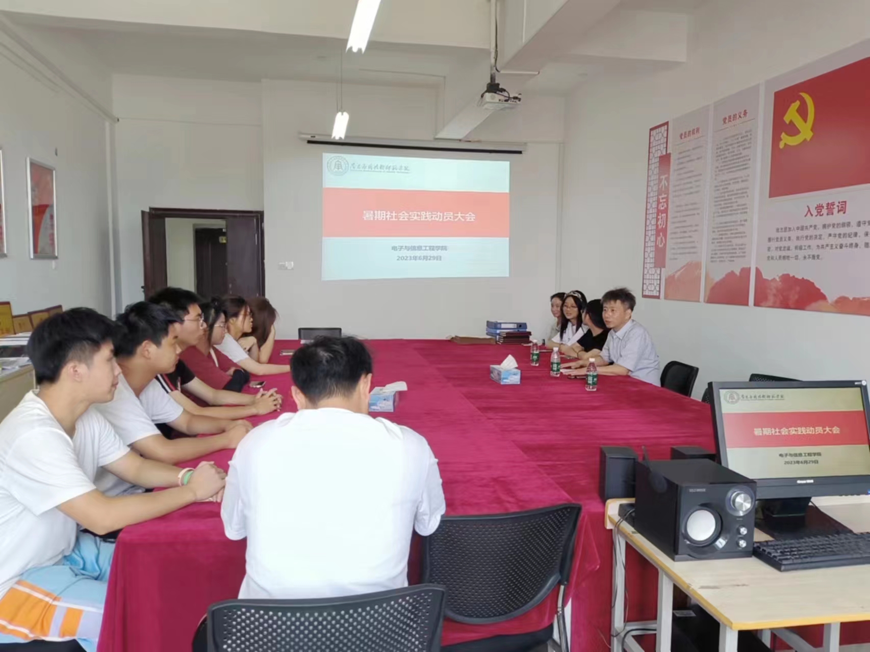为全面贯彻落实党的二十大精神,切实发挥共青团作为广大青年在实践中学习中国特色社会主义和共产主义的学校作用,引导和帮助广大青年学生在与现实相结合的“大思政课”中“受教育、长才干、作贡献”,6月29日中午12:30,永利yl23411官网在1407会议室召开暑期社会实践动员大会。学院助理万程刚、团总支书记李倩文、学生会指导老师赵威和志愿者们参加此次动员大会。