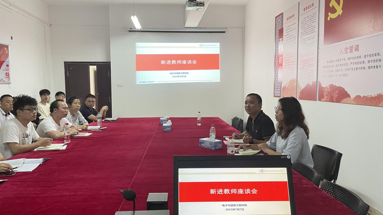 7月7日,学院在会议室1407召开新进专任教师座谈会,科研副院长罗丽、各教研室主任及全体新进专任教师参加了会议,会议由院长邹水龙主持。