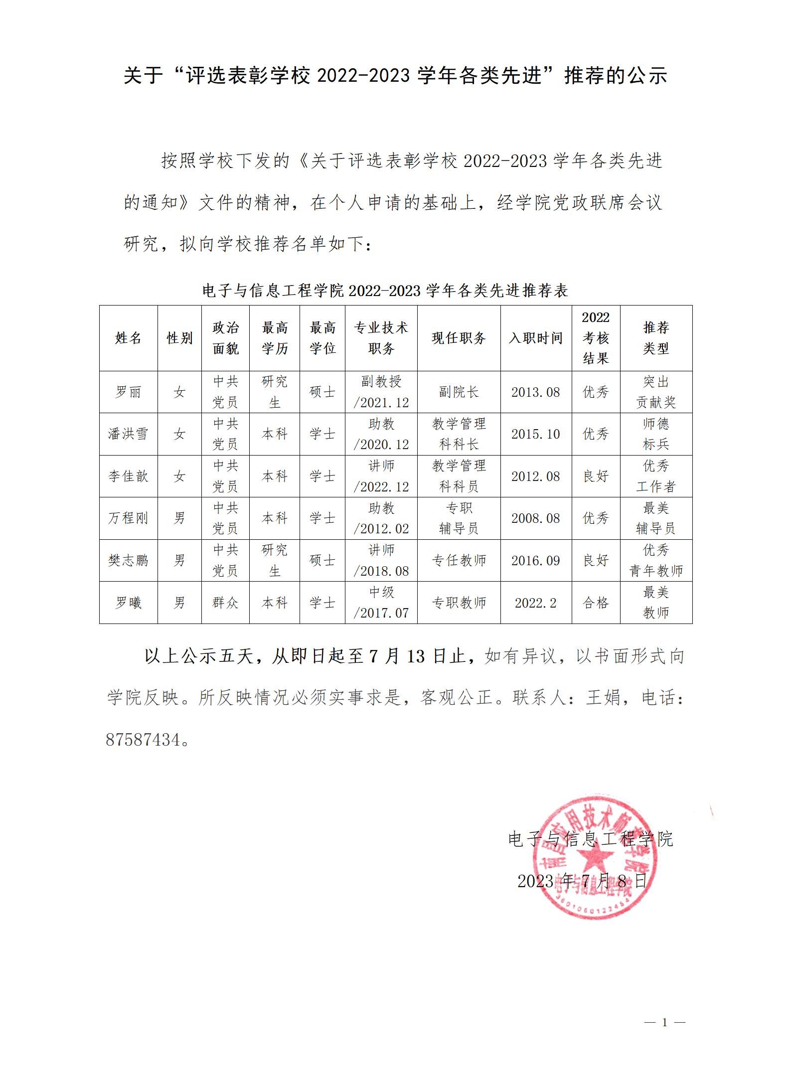 首页栏目 学院新闻 学院公告 学生工作 您现在的位置是:yL23411永利官网登录 > 首页栏目 > 学院公告 关于“评选表彰学校2022-2023学年各类先进”推荐的公示 管理员2023-07-081004 上一篇 [直播预告] 2023江西线上招生宣讲会 下一篇 yL23411永利官网登录关于评选2024-2025学年第一学期“先进班集体”、“文明寝室”、“优秀学生干部”、“优秀工作者”获