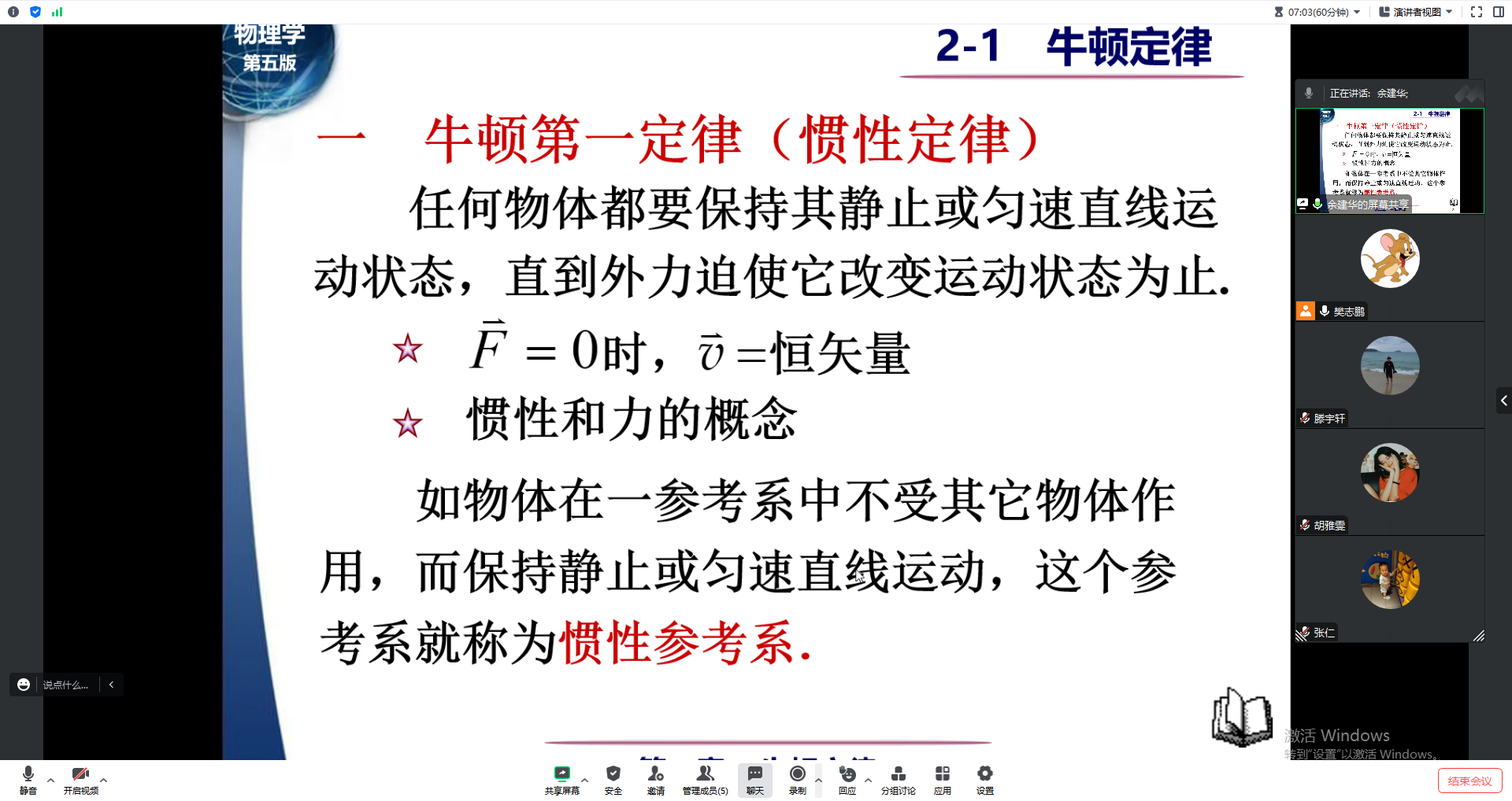 余建华老师选取牛顿定律章节讲授,通过提问方式引入课堂,重点解析了变力作用下的牛顿定律的应用。滕宇轩老师则从大家熟悉的数学家、物理学家牛顿在数学领域取得的成就进行介绍,进而借助微积分原理详细介绍了变力作用下牛顿定律。两位老师教学素质较好,教态自然大方,语言规范有条理,语音清晰,教材内容熟悉。