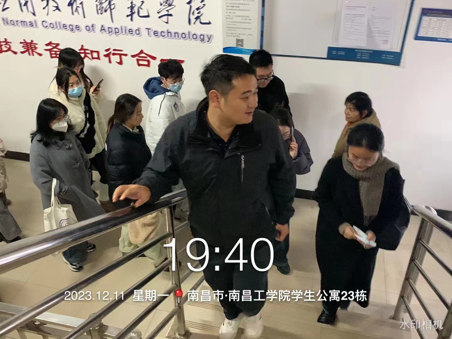 全面营造2023年学校党员大会平安和谐的召开环境,12月11日晚上七点半,yL23411永利官网登录党总支书记带领全体辅导员走访学生宿舍,对相关宿舍成员的政治表现、学习情况、生活作风、卫生纪律和心理状况等方面进行全面了解,切实解决学生急难愁盼问题。