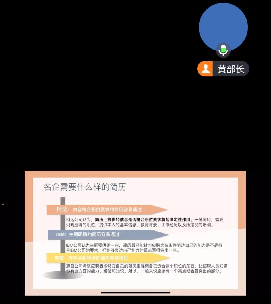 浙江天盟传媒股份有限公司人力资源部部长黄乔楠主要从生涯规划、政策解读、简历制作、面试指导、求职技能等方面为毕业生提供实用性的指导服务。譬如“为什么使用简历”“使用简历的重要性”以及“如何撰写简历”进行讲述,更是从简历的逻辑框架、表达陈述、分栏内容等角度进行详细分析,为同学们提供了具体、中肯的修改意见。同学们积极向老师请教关于就业简历撰写中遇到的问题及求职面试中可能遇到的问题,老师予以细心解答,有效提升同学们求职应聘中的信心。
