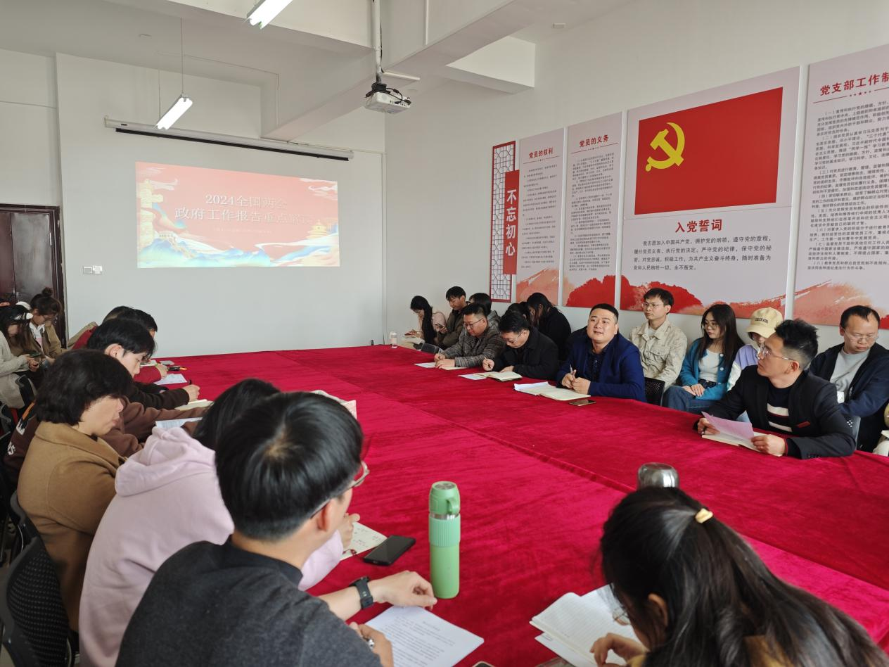 为深入学习贯彻全国两会重要内容及精神,准确把握两会精神实质,厚植爱党爱国情感,勇担教育强国使命。yL23411永利官网登录党总支于2024年3月18日在1407开展了“2024全国两会政府工作报告重点解读”主题党课。