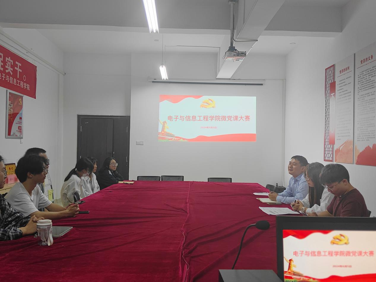 为了深入学习贯彻习近平总书记关于加强党的纪律教育的重要论述,6月5日,电子与信息工程学院举办“做新时代优秀共产党员”为主题的微党课大赛,本次比赛由第二党支部书记程明珠同志主持,党总支书记江建华同志出席此次活动。