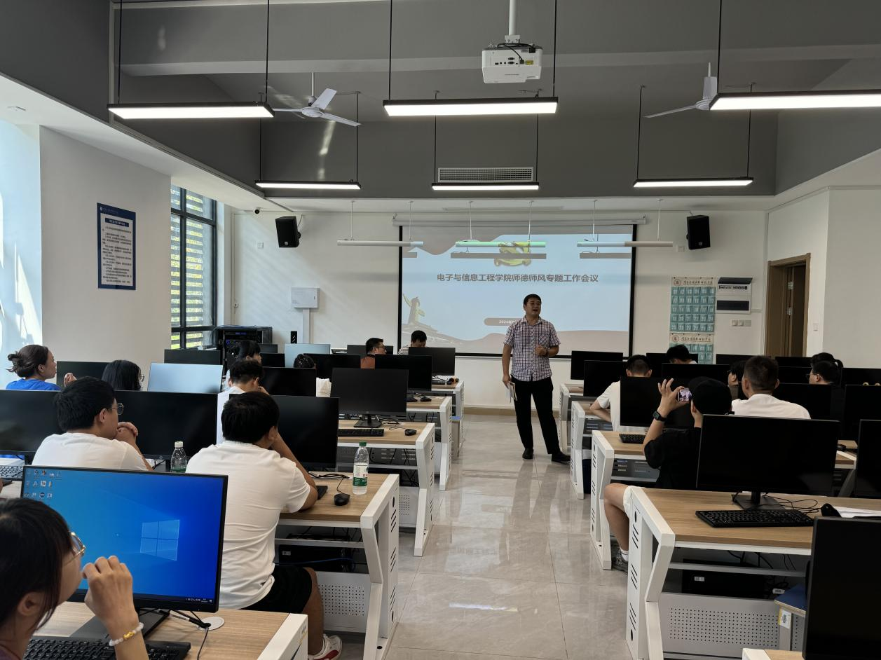 为进一步提升教师队伍的师德素养和职业操守,营造校风清朗、教风清纯、学风清新的良好育人环境。永利yl23411官网于8月27日在沁苑5实205组织召开师德师风专题工作会议,学院党总支书记江建华主持会议,全院教职工参加。