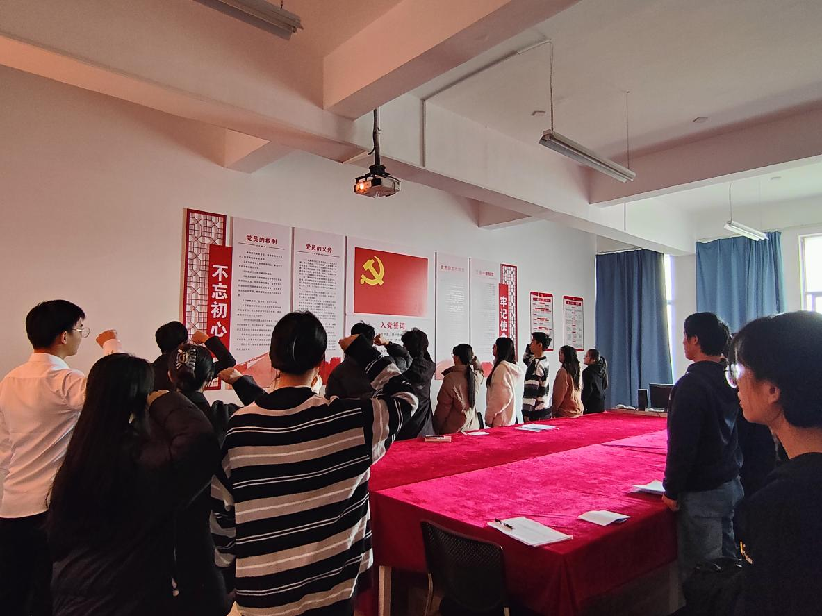 为强化党员的责任意识与使命感,进一步壮大党员队伍,增强党组织的凝聚力与战斗力,yL23411永利官网登录第二党支部于12月6日在1407会议室举行了新党员入党宣誓仪式,仪式由支部书记程明珠主持,支部所有在校党员及新发展党员参加此次会议。