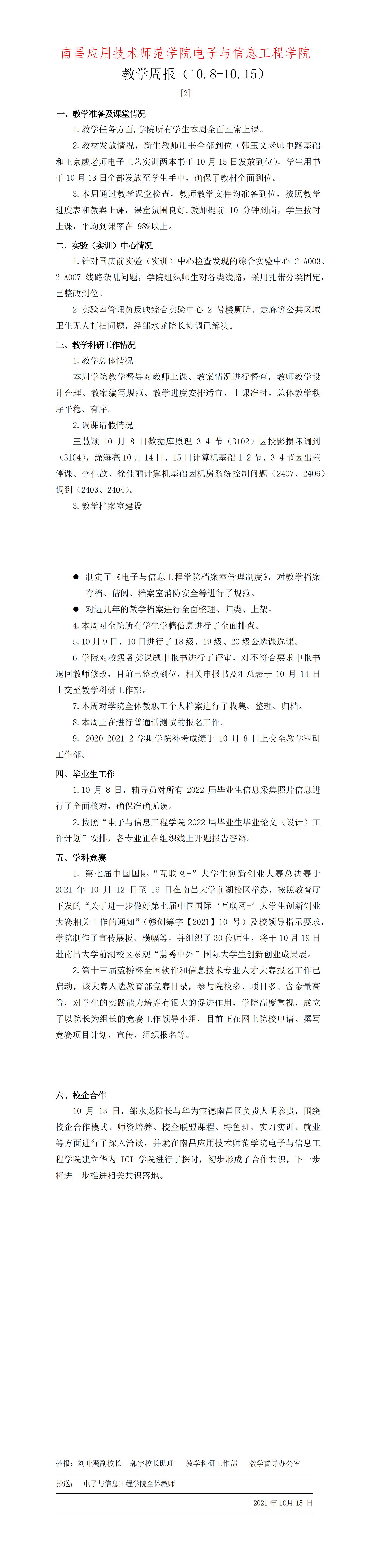 首页栏目 学院新闻 学院公告 学生工作 您现在的位置是:yL23411永利官网登录 > 首页栏目 > 学院公告 学院教学周报【2】号 管理员2021-10-15477 上一篇 关于2021-2022年第一学期普通话测试工作安排的通知 下一篇 yL23411永利官网登录关于评选2024-2025学年第一学期“先进班集体”、“文明寝室”、“优秀学生干部”、“优秀工作者”获