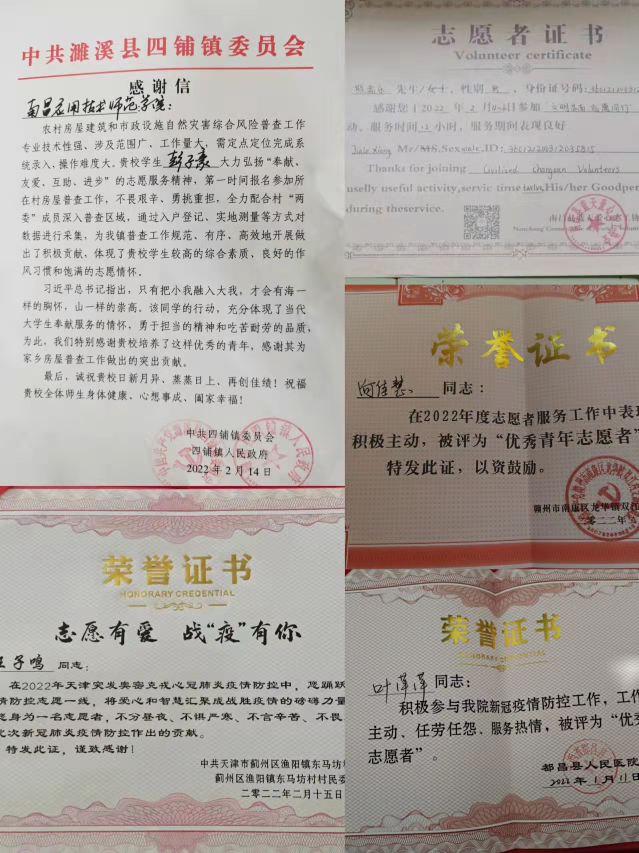 永利yl23411官网共56名学生参与了此次社会实践,学生结合家乡不同情况开展了形式多样的志愿服务:新冠疫情排查、协助社区核酸检测工作、宣传反诈知识、房屋调查、协助家乡居民下载国家反诈app、交通管理服务、乡村清洁等。服务期间,学生志愿者们讲礼貌、有上进心、对工作负责,能吃苦愿奉献,收获了来自家乡的一致好评。